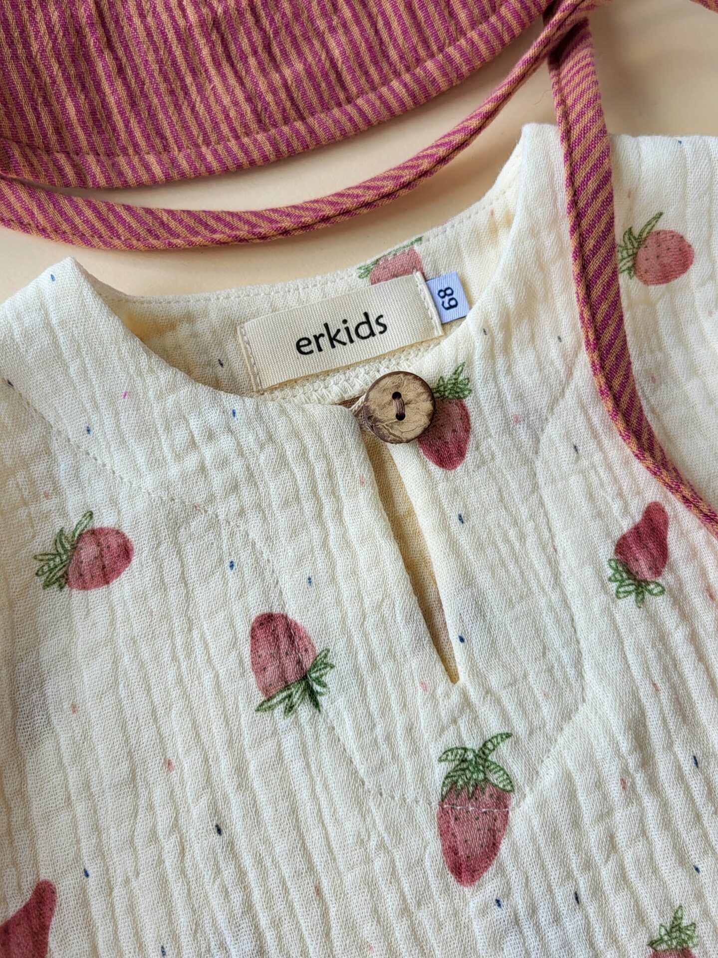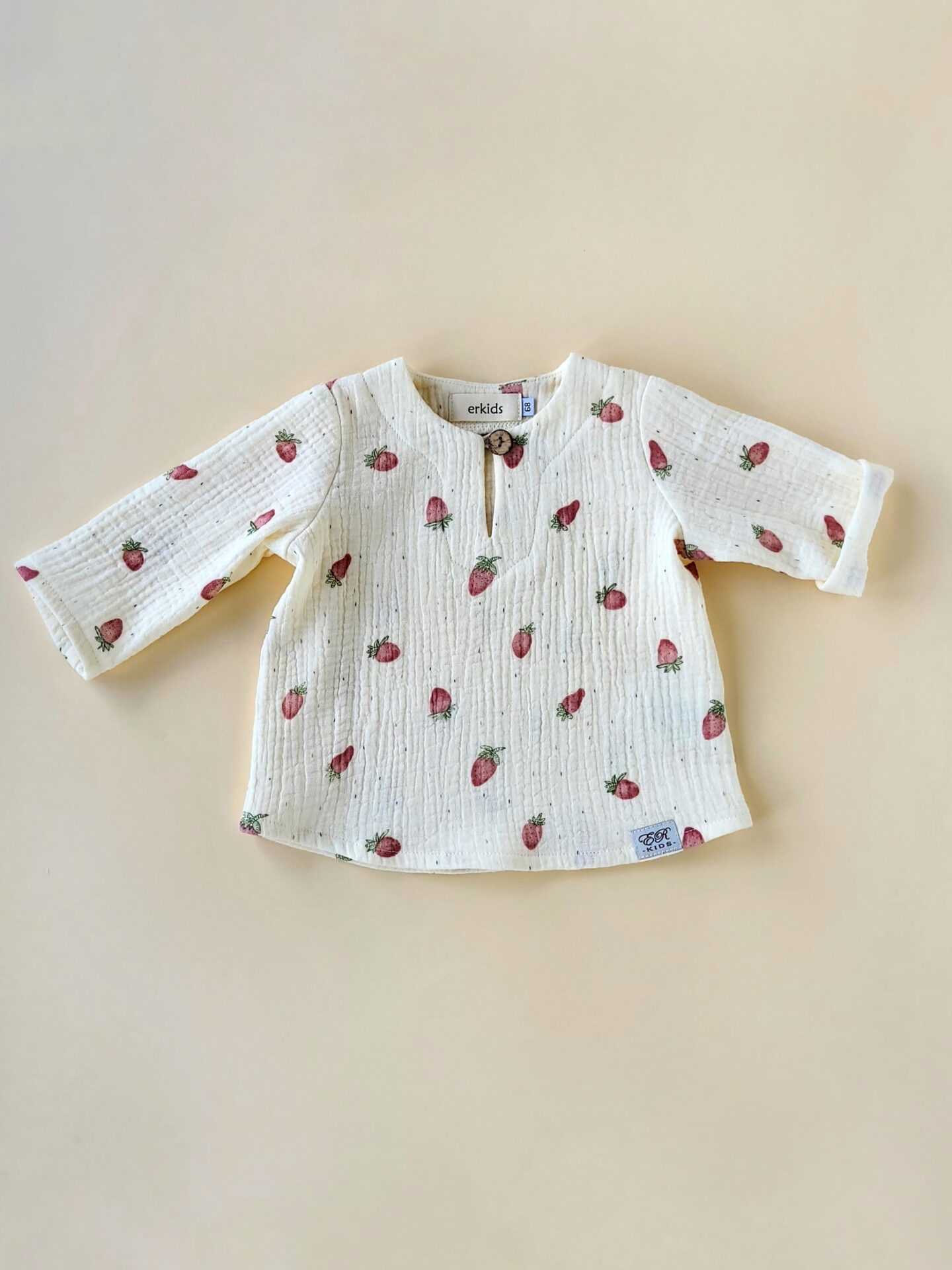 - luftiges Babyhemd aus Erdbeeren-Musselin, perfekt für heiße Tage