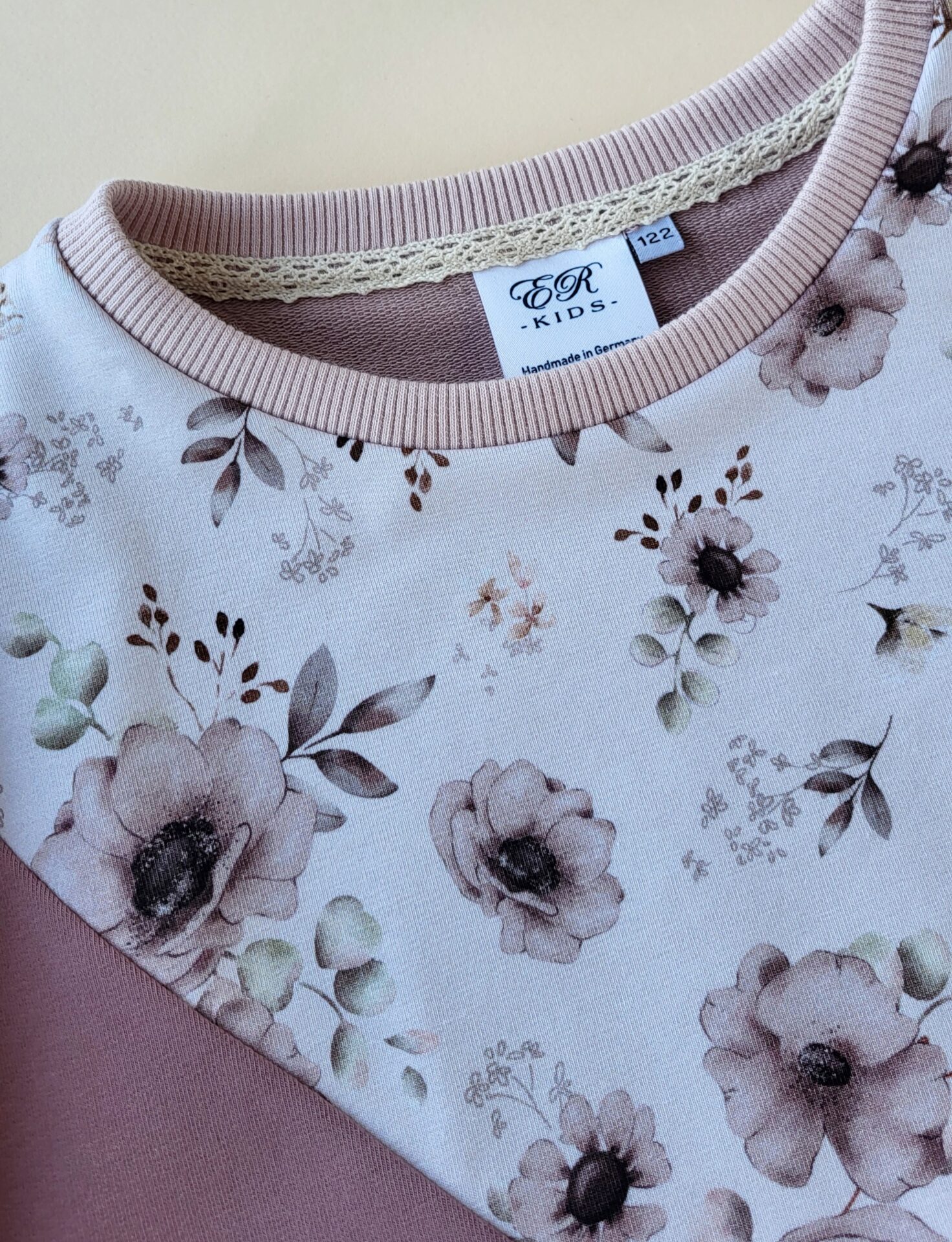 Dreiecks-Sweater Blumen mauve Gr. 122